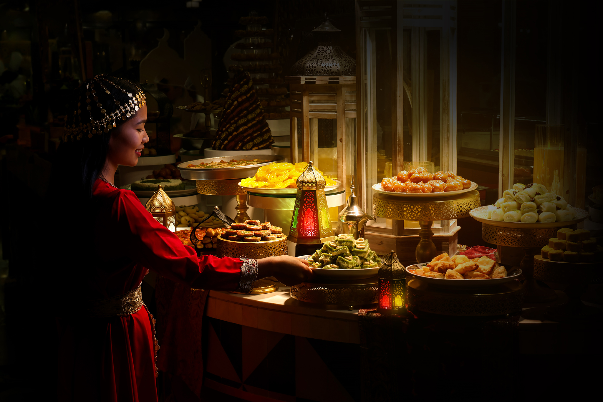 Guests are welcomed with a generous Iftar buffet of classic Ramadan favourites alongside familiar international dishes. Live oud music sets a gentle tone, while a dedicated luqaimat station and henna artistry add an authentic, meaningful nod to Ramadan traditions.