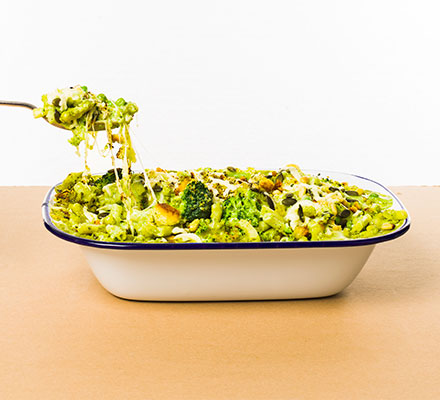 Revamp mac ‘n’ cheese with broccoli, spinach and peas, plus a crunchy nut and seed topping. It has all the flavour of the classic dish, but with added nutrients