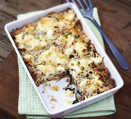 Spread the topping, then sprinkle over the breadcrumbs. Spread the topping over the pancakes, sprinkle with breadcrumbs and bake for about 30 mins until bubbling and golden. Serve with a salad or veg.