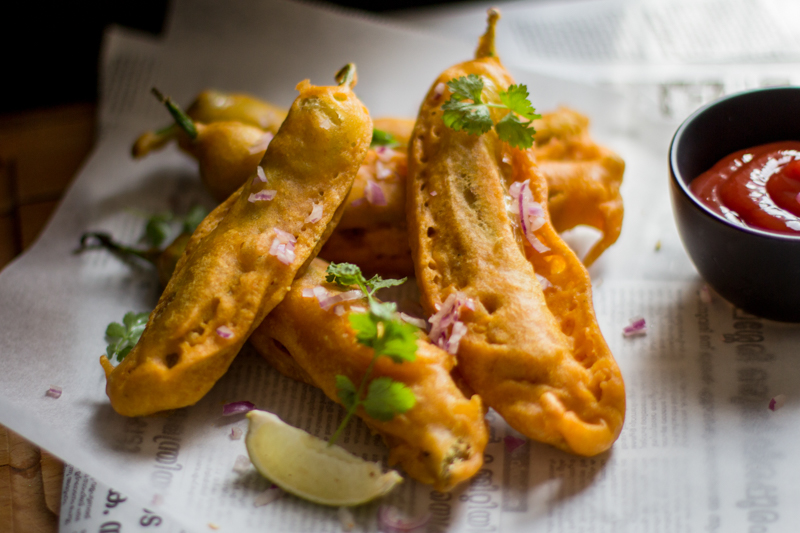 Frying : Heat enough oil in a pan on medium heat. Make sure to use a wide frying pan. Dip the chilly holding its head in to the batter and coat all the sides and into the frying pan. Cook on side side for around 2-3 minutes and turn it, another 3 minutes or until golden brown. Transfer into kitchen tissue to wipe of the extra oil .