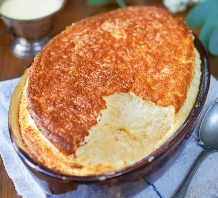 Sprinkle the grated cheese over the soufflé and bake for a further 5 mins. Serve immediately, placing the soufflé and sauce in the middle of the table so everyone can help themselves.