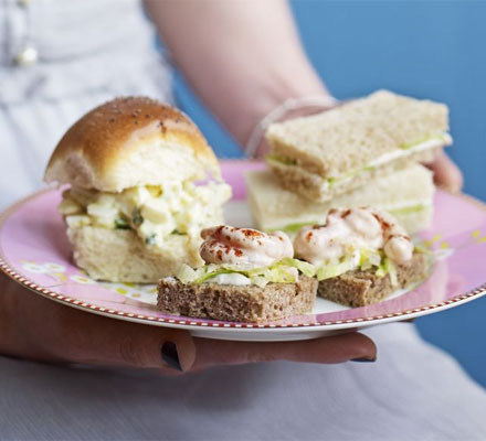 Roughly chop watercress, and stir this into the eggs with some salt and pepper and mayonnaise. Divide the filling between the rolls.