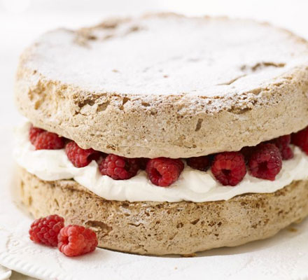 A fantastic combination of sweet nutty meringue, fresh cream and tart raspberries