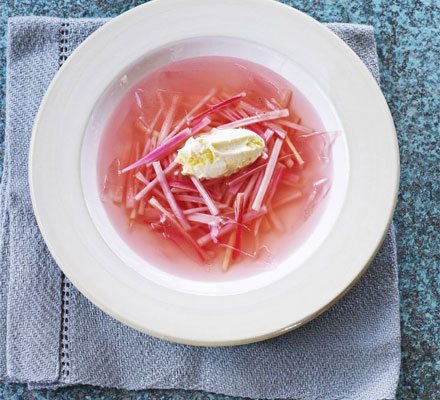 This is a great way to cook rhubarb so that it retains structure and bite – plus it’s a unique fruit jelly to serve up at a dinner party