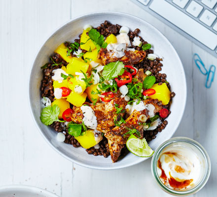 A fruity chicken salad with lentils and spice to make lunchtimes worth taking a break for