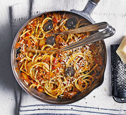 Try out something new with mince- this pasta sauce is flavoured with fennel and rosemary and contains salty olives