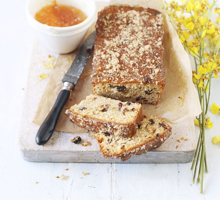 A delicious loaf cake with the citrus tang of orange marmalade and a crunchy demerara topping