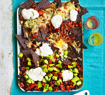 Enjoy this colourful sharing dish with nachos, black beans, salsa, avocado and melted cheese. Everyone will enjoy digging into it straight from the pan