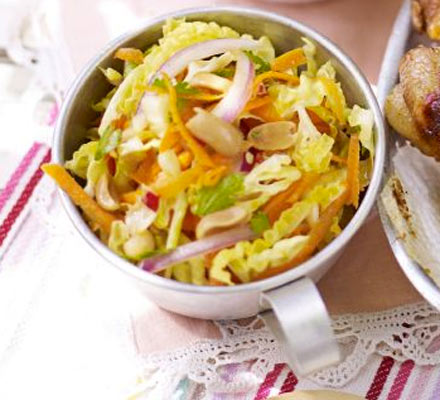 Shred carrot, cabbage and onion, then add Asian flavours: peanut, coriander, chilli and lime