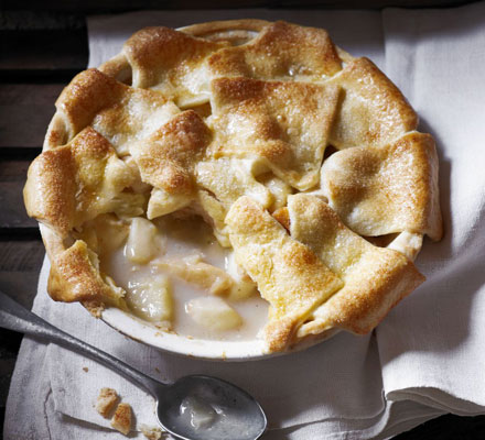 Serve this lattice-topped, shortcrust pasty warm with custard – if you don’t have quinces make up the weight with apples or pears