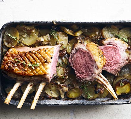 Like French ‘boulangère’ potatoes, roasting your meat on top of your spuds means they soak up the flavoursome juices