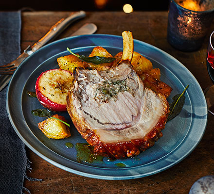 Butcher's talkWe’ve used the loin on the bone, which is also known as a rack of pork. You can also cook the same recipe with the boned loin which will weigh about 1.5kg and will need 20 mins less in the oven.