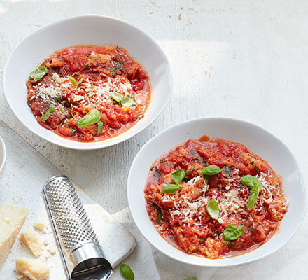 Make our papa al pomodoro, a thrifty Tuscan stew made simply from stale bread and tomatoes. It’s really quick to make and perfect for using up stale bread