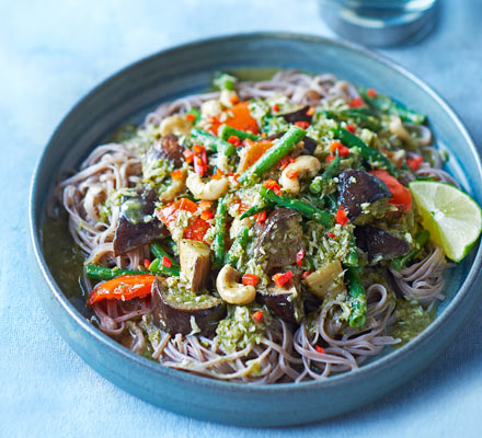 An easy vegan version of a Thai noodle curry, packed with vegetables, coconut milk, chilli and spices to make a flavoursome, warming family meal