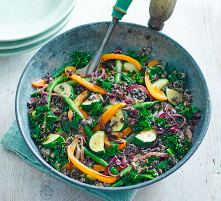 Quick, easy and packed with healthy veg, this is a great midweek meal for vegans and veggies