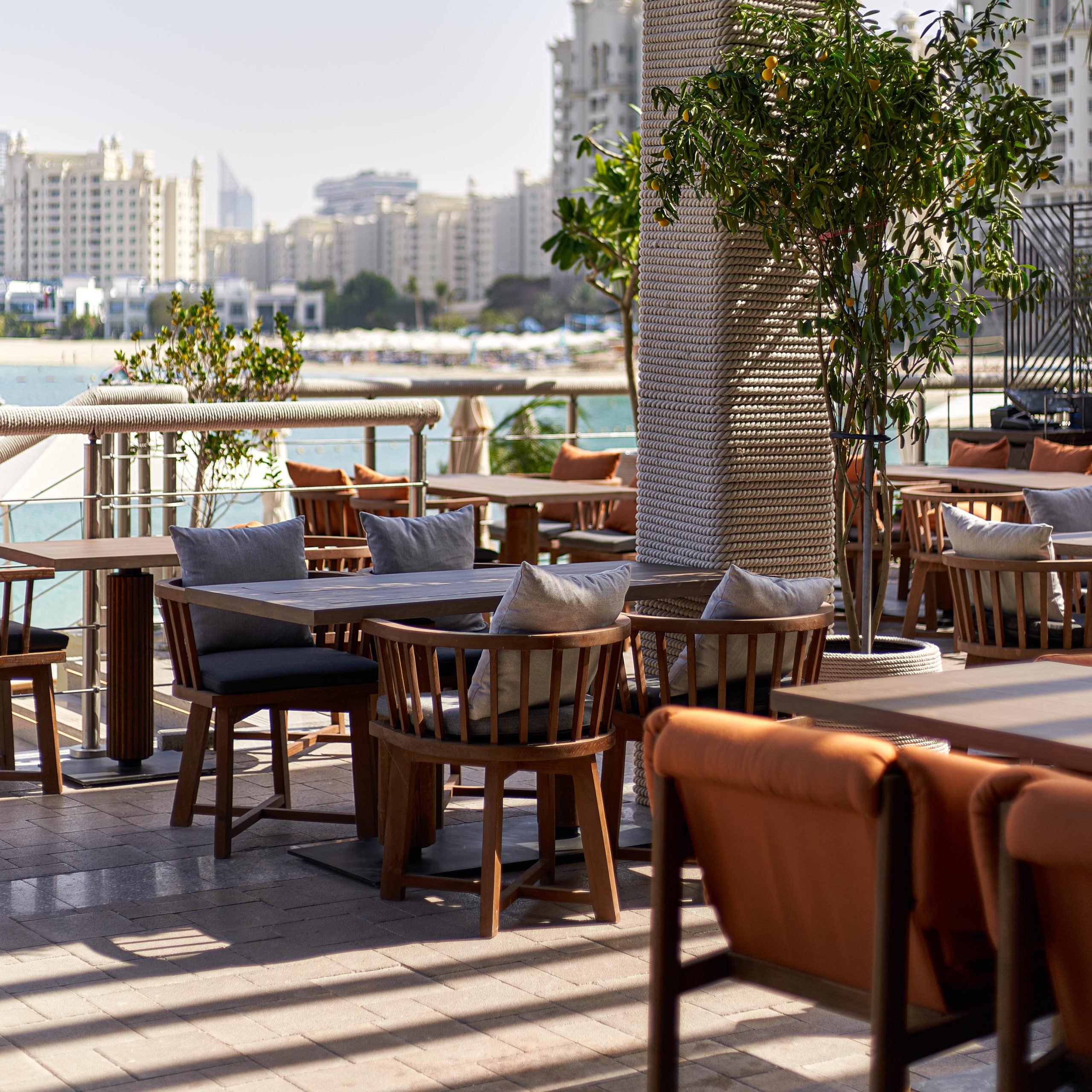 Taking over the previously occupied Breeze Beach Grill, Ría Restaurant & Beach Bar brings forward a tranquil, upscale dining atmosphere to relish in Levantine cuisine, inspired by the fresh Mediterranean shores. Ría, which translates to a small river, incorporates earthy elements throughout its decor with lush greenery, a fresh fish counter featuring the finest catches of the day, and rustic wooden interiors, adorned with unique vases and minimalist artwork throughout the dining venue.
