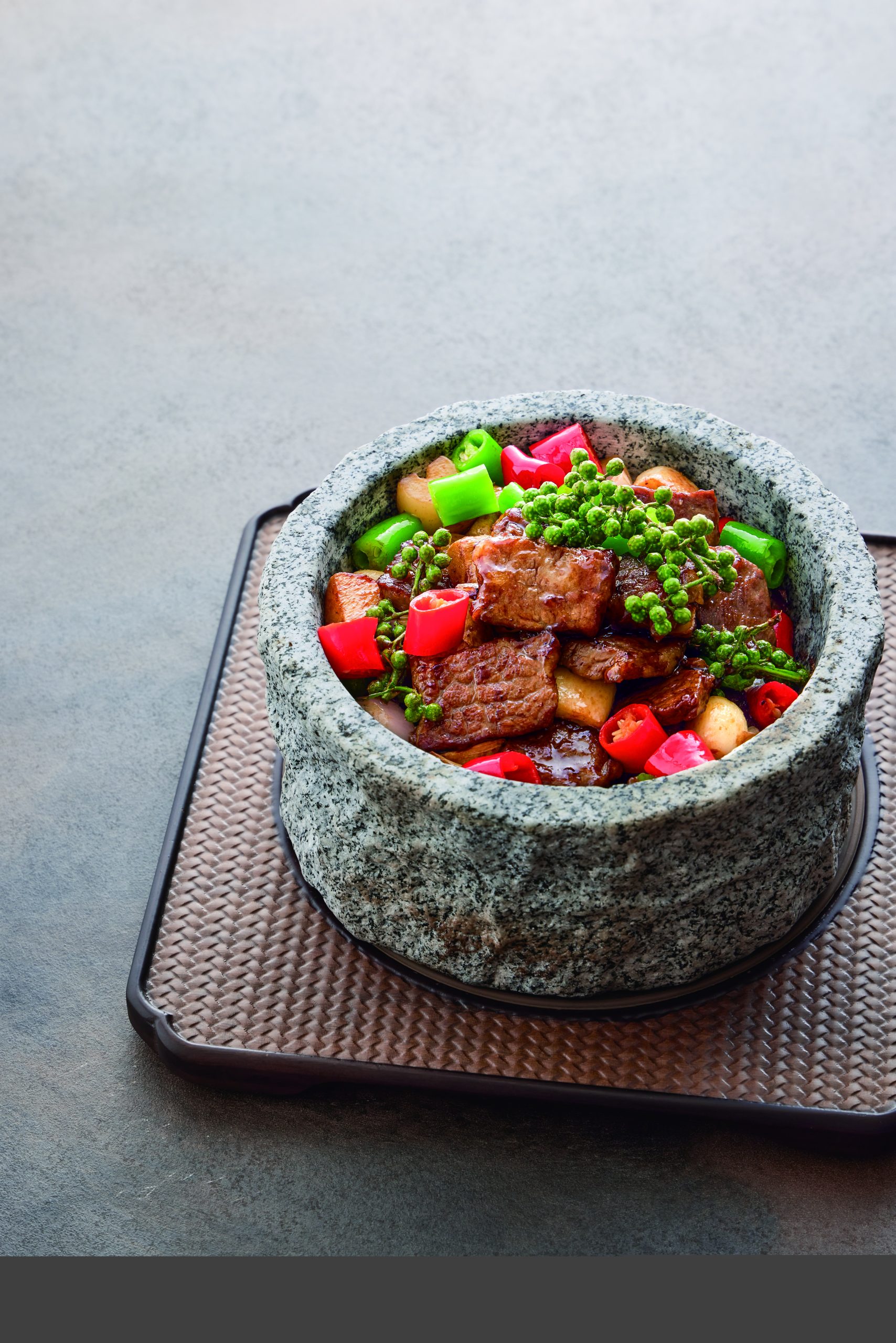 Enjoy the succulent meat wrapped in delicate pancakes, complemented by the rich sweetness of soybean paste, the refreshing crunch of scallions and cucumber strips, and a touch of heat from the spicy sauce. After a hearty main, we opted for a crispy and soft Spicy chicken with red chillis accompanied by the Angus beef in hot stone pot featuring a savoury sauce infused with garlic, ginger, and chilli.