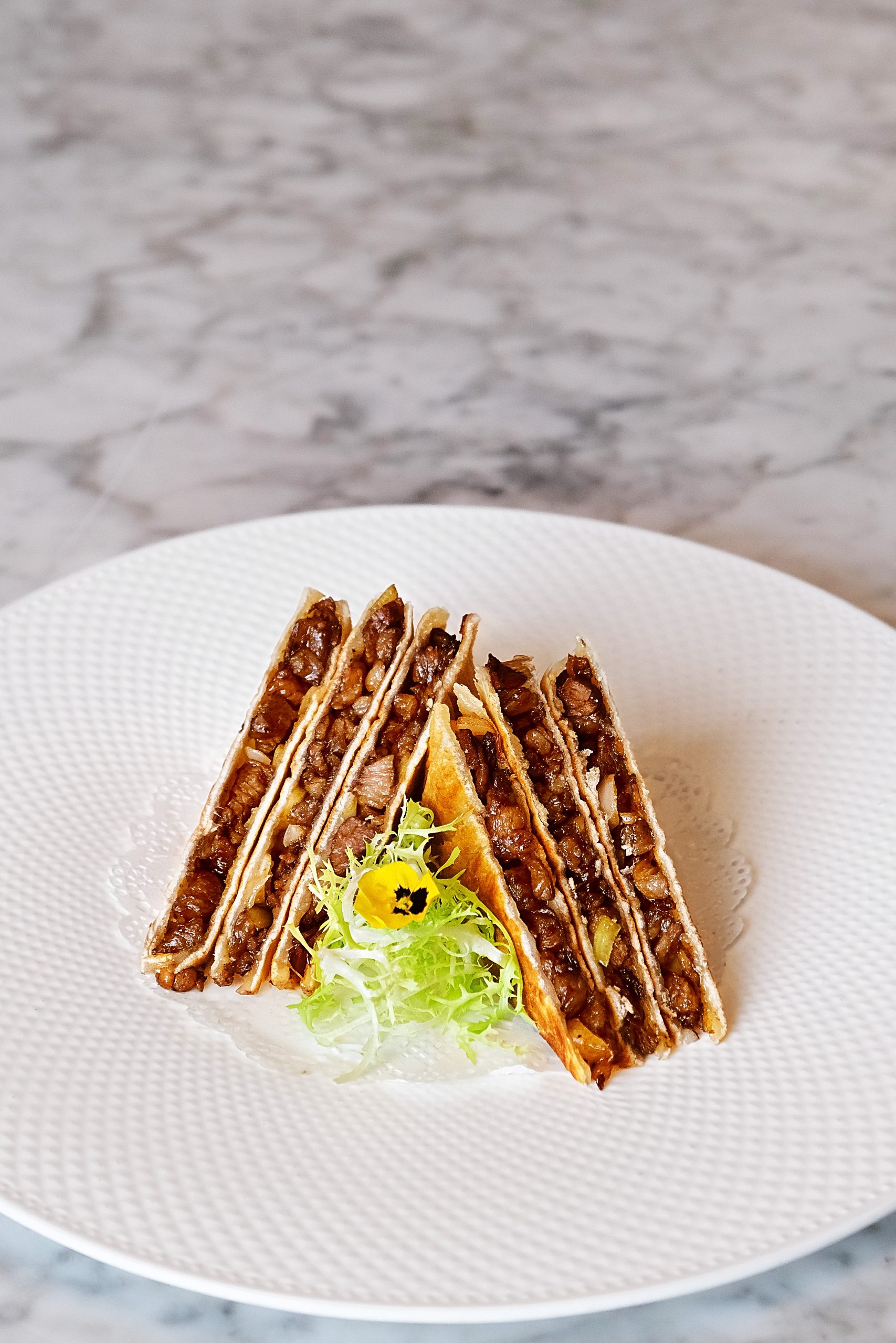 The renowned Peking roast duck was next, a signature Beijing dish prepared using skillful techniques passed down through generations. The delicacy is marinated for a period of 48 hours and cooked to perfection in a woodfire oven, which is why the dish requires to be pre-ordered. The aromatic duck is served to the table by one of Chuan’s chefs, starting with the crispy and tender skin of the roasted bird, served alongside a sugar dip.