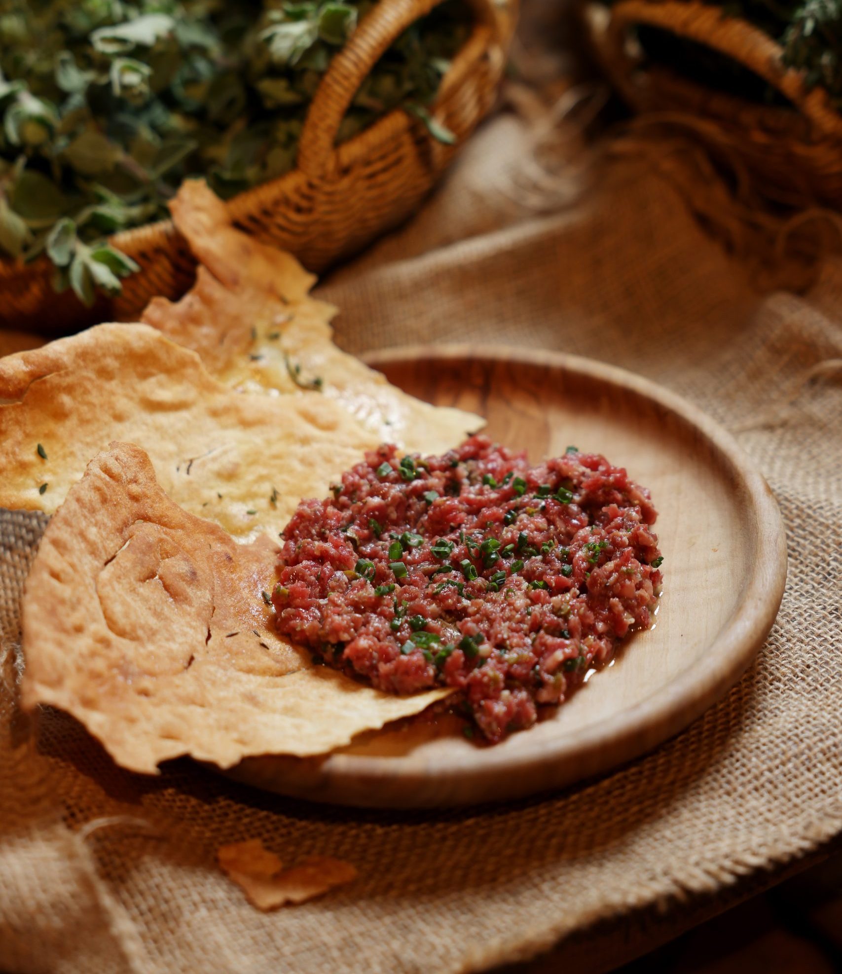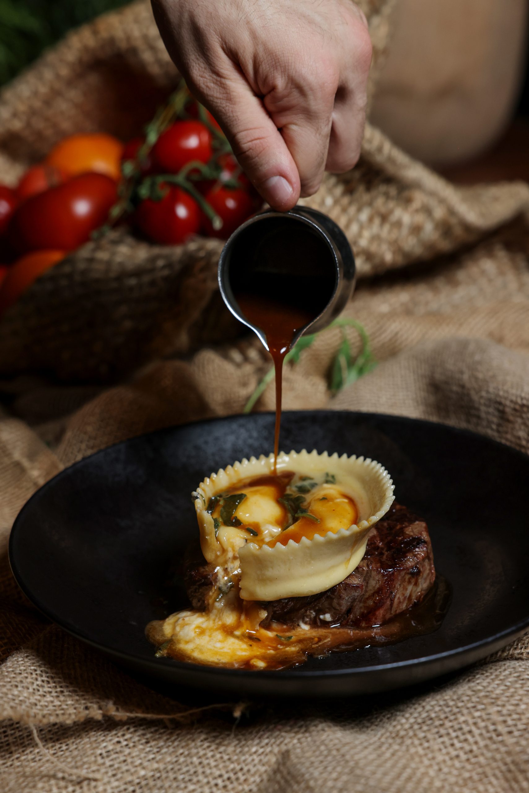 Once settled into our seats, we were served focaccia bread with tomatoes, set on the table alongside balsamic vinegar and olive oil to enjoy. We began our meal with the Battuto di Manzo, a finely prepared beef tartare. The minced beef glistened with olive oil and was scattered with capers and chives. Mustard and lemon zest added a subtle lift, while thin slices of carasau bread with mixed herbs and parmesan provided added flavour.