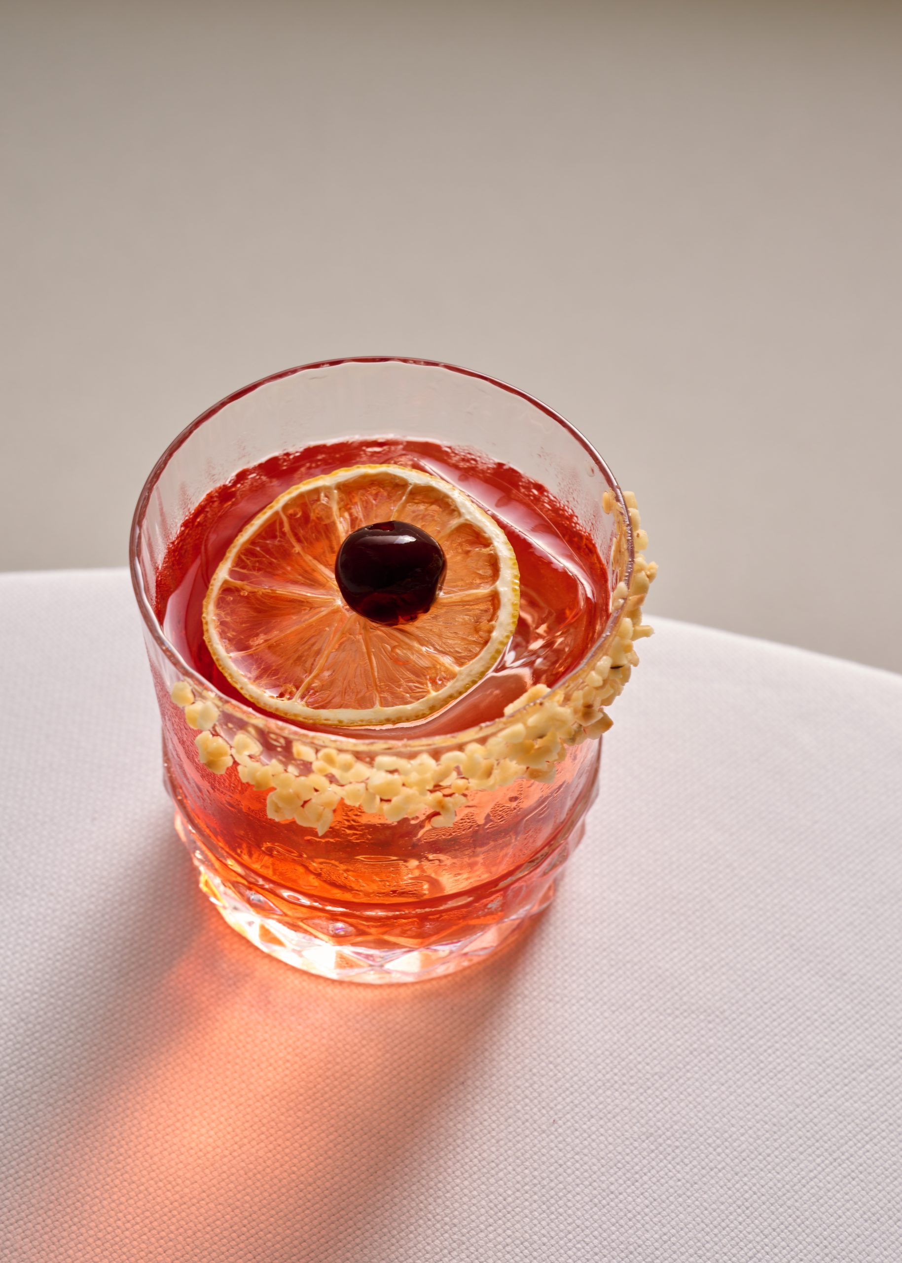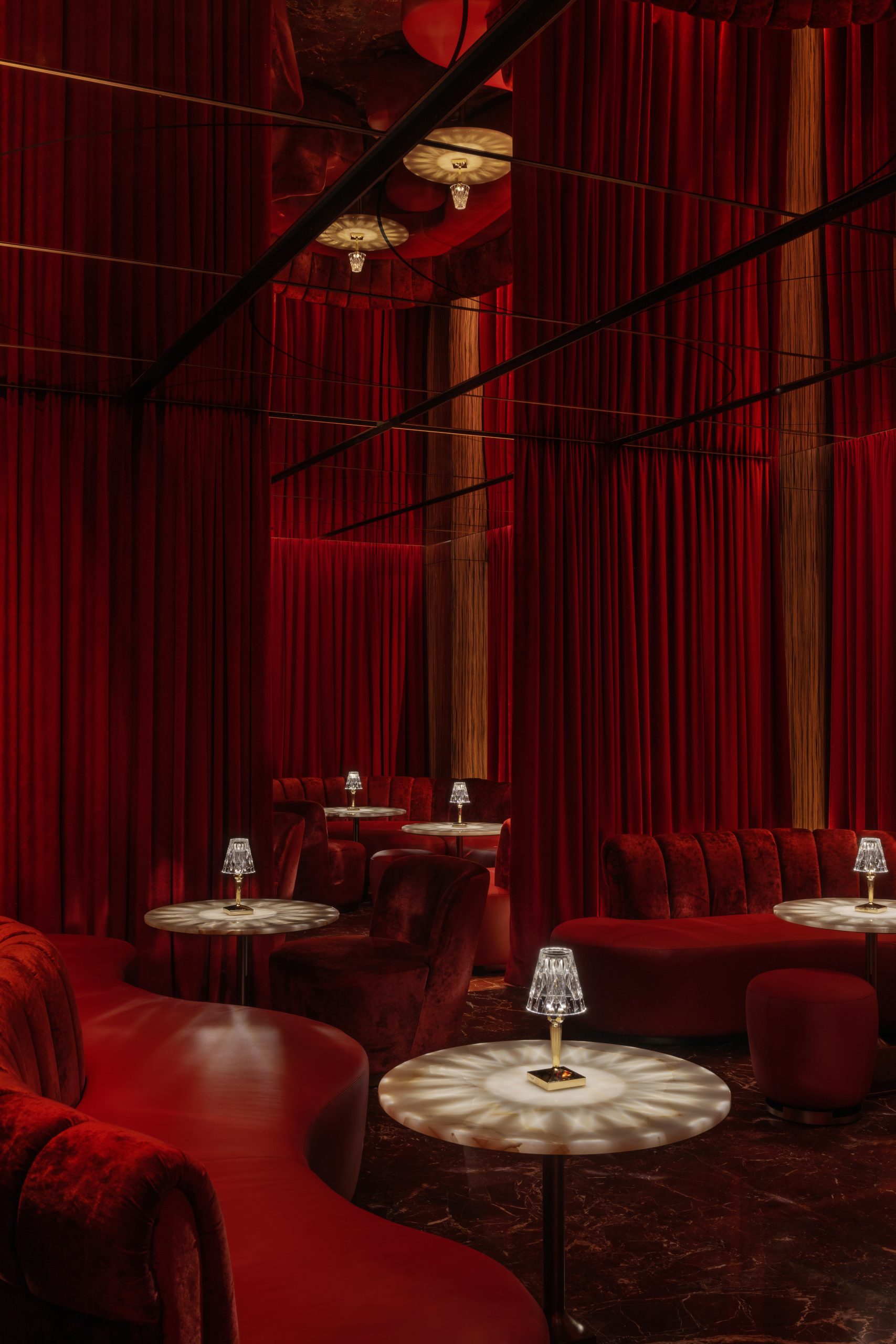 Before heading home, we made a quick detour to Rose Bar. Draped in rich red velvet with mirrored ceilings and soft pools of light from crystal fixtures, the space feels both theatrical and secluded. Marble tables and curved seating offer an elegant spot to wind down. I chose the Miami Vice, a blend of strawberry and roasted piña with tropical undertones.