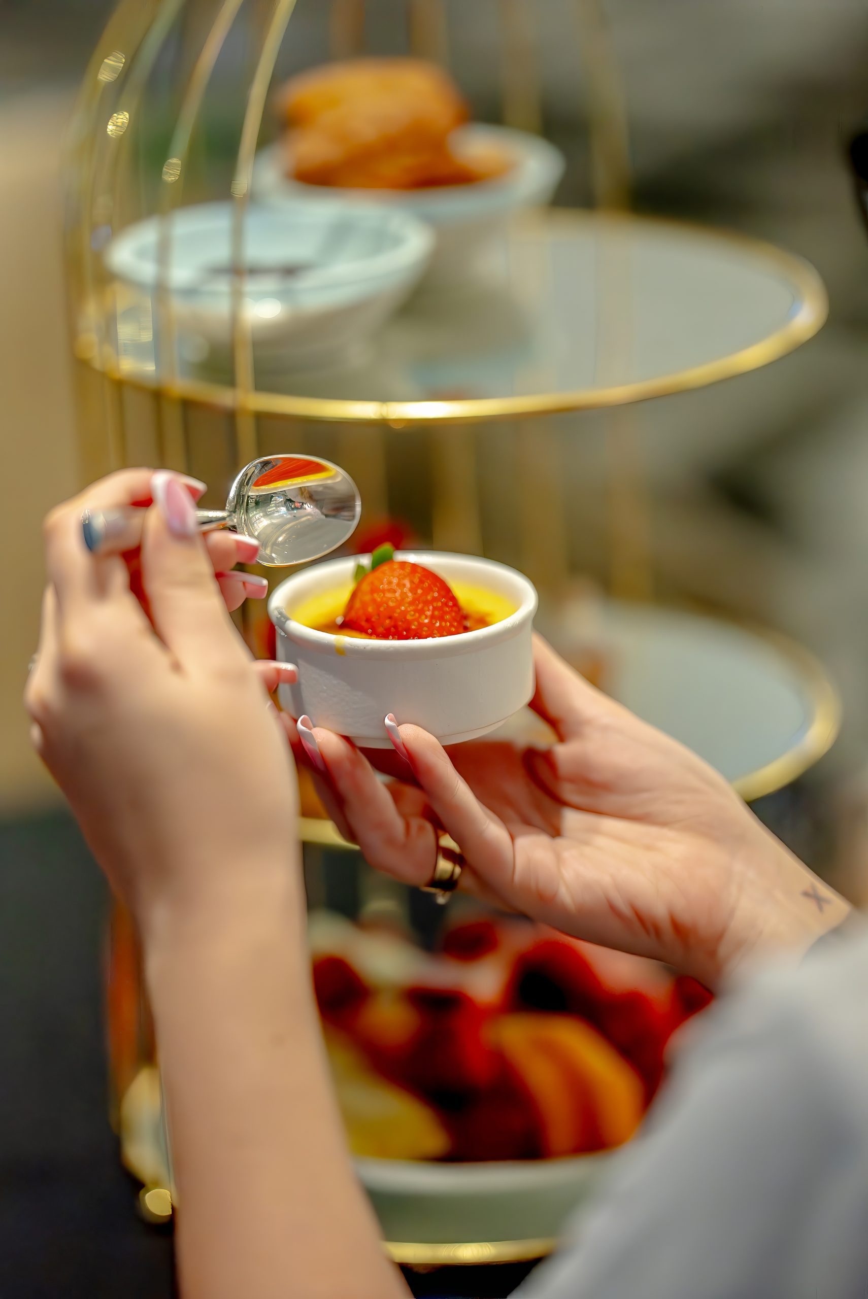 Dessert rounds off the evening with a shareable spread of Spanish classics: crispy churros dusted with sugar and paired with a thick, indulgent chocolate sauce; Tarta de Santiago, a light almond cake dusted with powdered sugar; Crema Catalana, a smooth, lemon-and-cinnamon-infused custard with a caramelised sugar crust; and Tarta de Queso, a rich, creamy Spanish-style cheesecake.