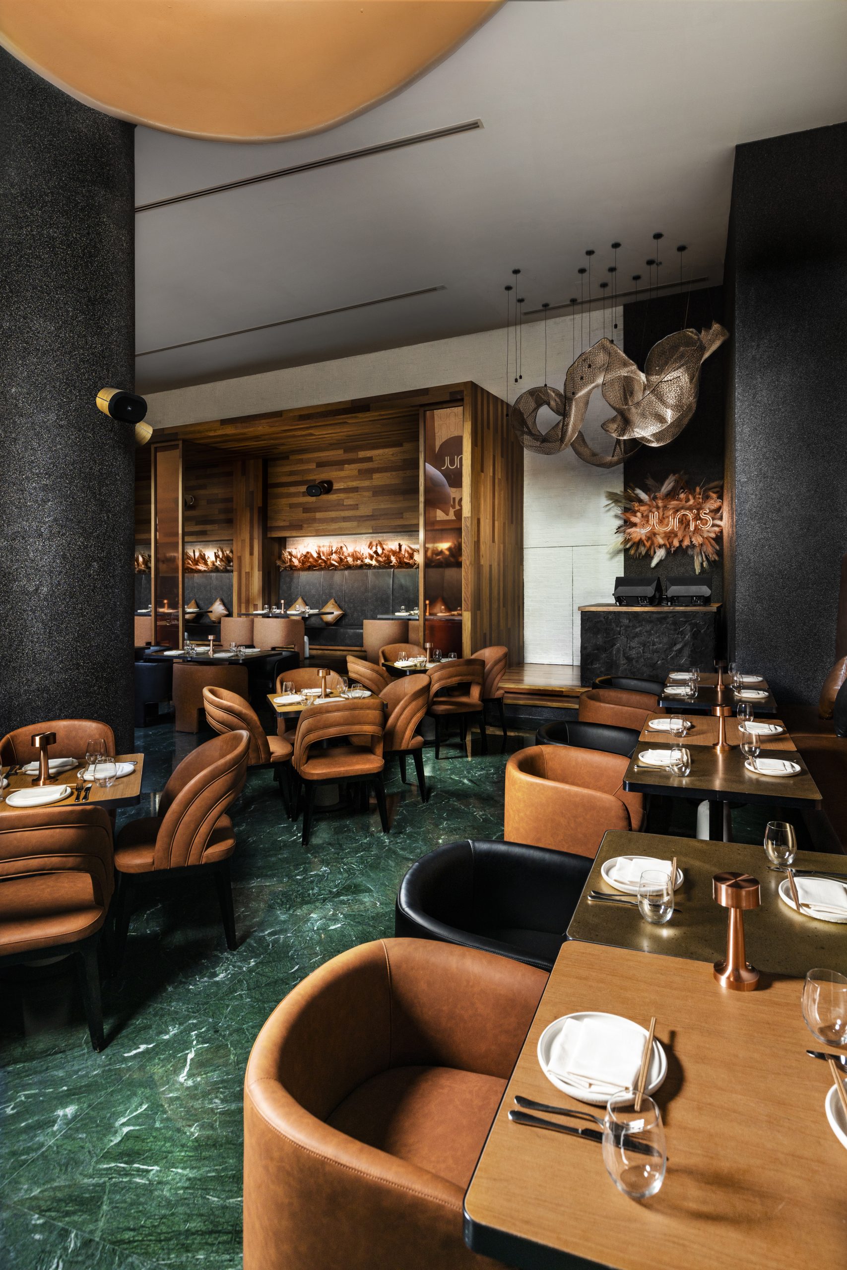 Anchored along Sheikh Mohammed Bin Rashid Boulevard, Jun’s embodies a cool composure with cultural sensibility. Chef Kelvin Cheung and his team move fluidly through the intimate dining room, where jade-green floors and rice-bowl-inspired pendant lamps shape an ambience that feels refined without tipping into formality. This is where third-culture cooking comes to life.