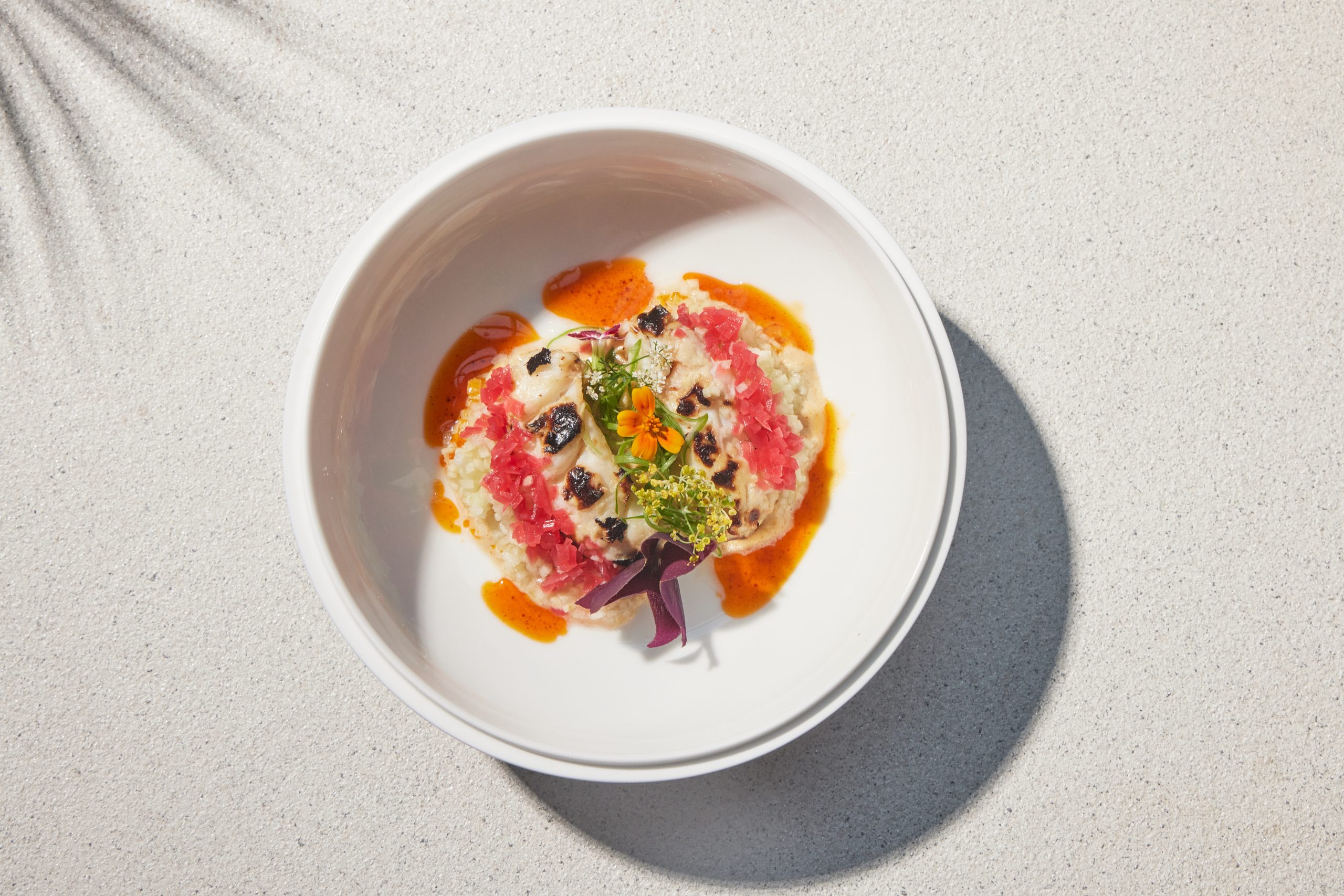 Crabby mom is an adaptation of his mother’s Singaporean chilli crab, pairing gentle sweetness from the king crab with confit onions and brown-butter hazelnuts. On the side, a mantou bun accompanies the dish, warm and pillowy within. The sort of bread that invites quiet longing for seconds, or for a bag to take home, should the kitchen ever decide to sell it on its own.