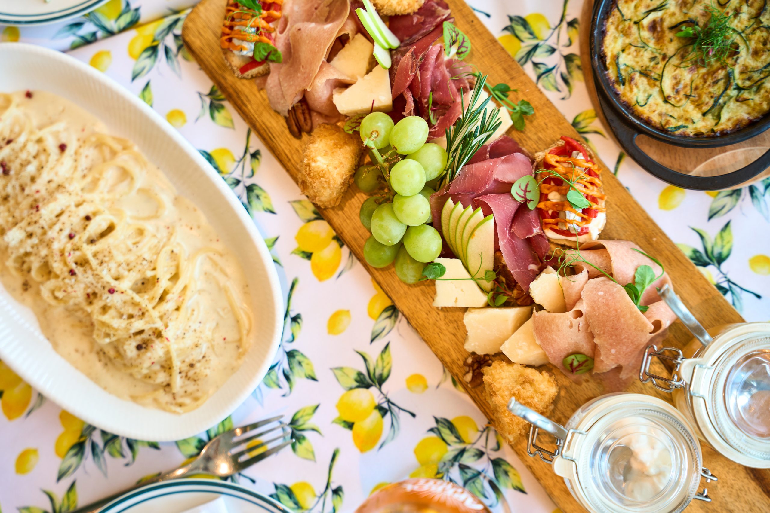 Fi’lia Dubai, the region’s female-led Italian restaurant, is effortlessly elegant from the moment you step in. On a sunny Sunday afternoon, we managed to snag a spot by the floor-to-ceiling windows, and the view alone set the tone for the La Cucina di Mamma brunch. Sunlight poured in, catching the warm wooden floors and the mix of sleek tables and cosy banquettes. Lush greenery and bold floral arrangements softened the space, while copper accents and gentle lighting added a subtle glow.