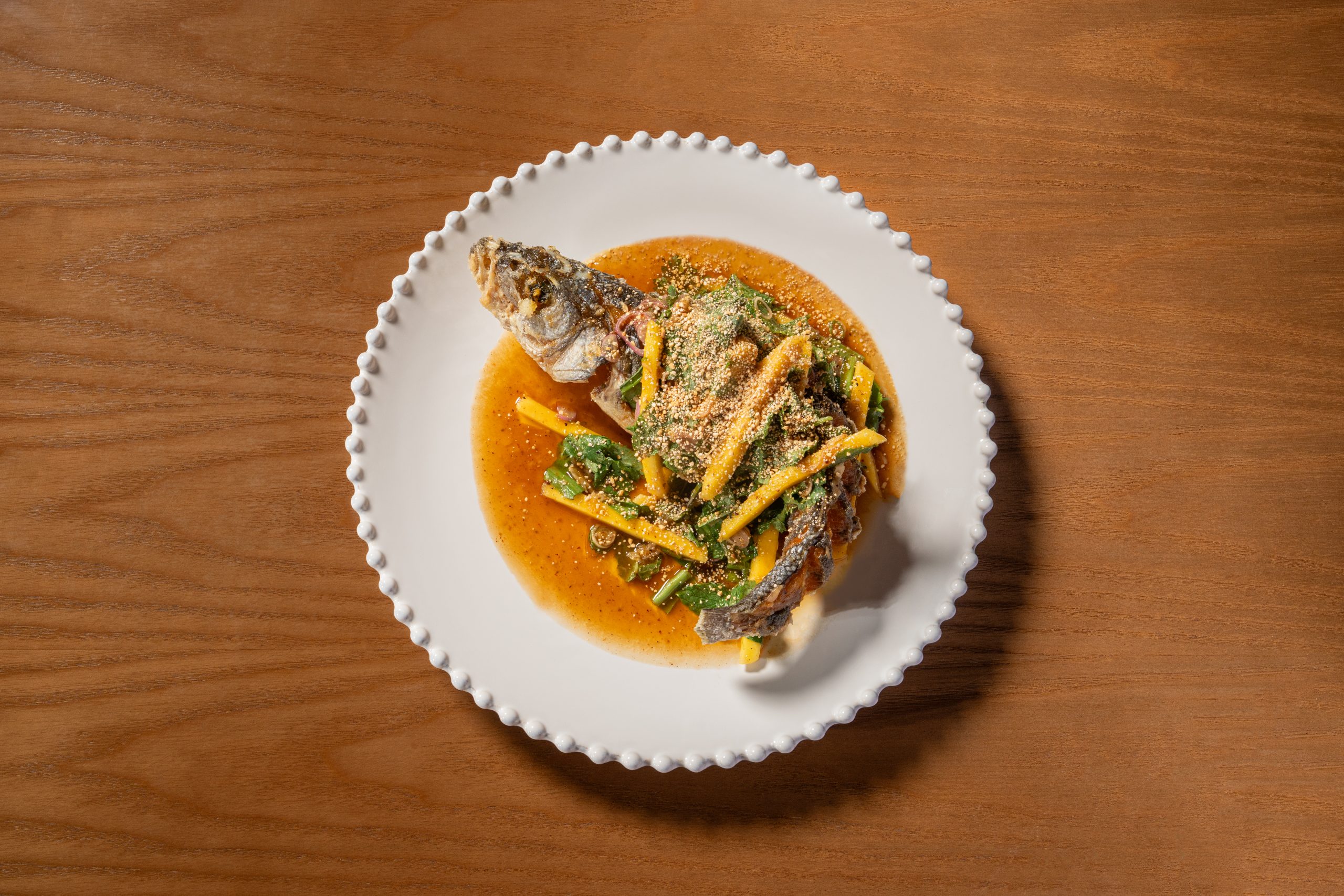 Innovation at Manāo extends far beyond the wok. Drawing from Orfali Bros’ renowned fermentation philosophy, the team integrates sustainable techniques while honouring Thai roots, most notably in the beverage program, which features refined zero-proof pairings infused with tea and tropical notes.