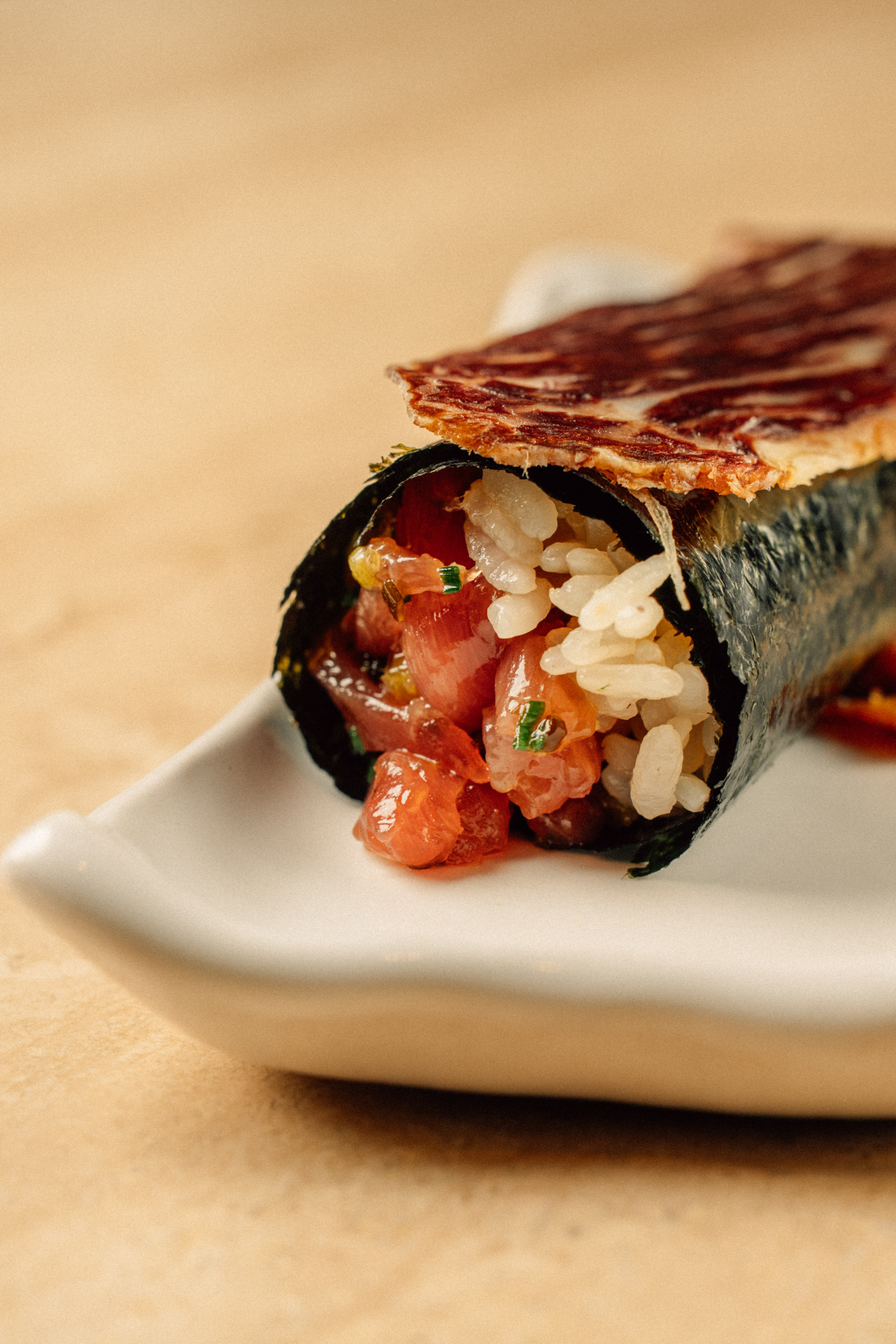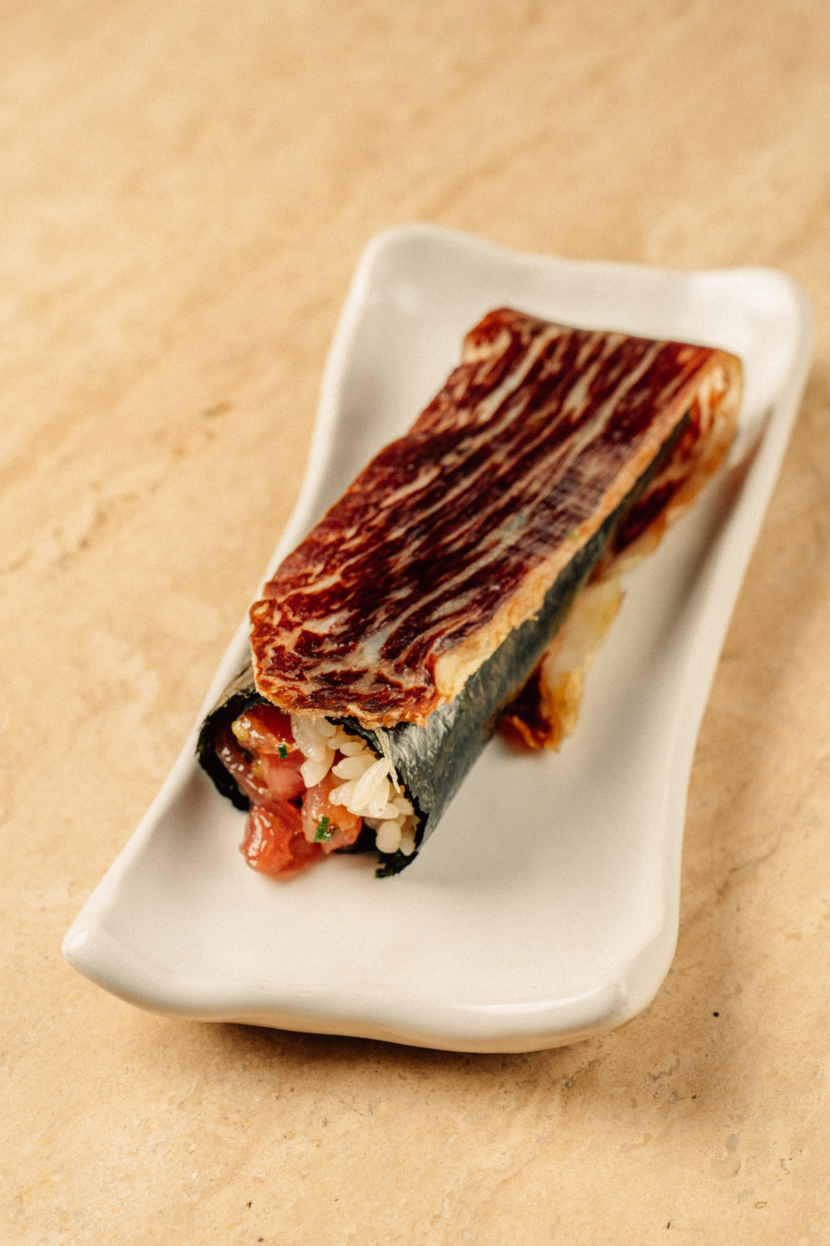 Tucked away in One Central’s dining enclave, 25 Jump Street, Yubi feels like a secret stumbled upon down a Tokyo back alley. As the UAE’s first licensed homegrown handroll bar, this newly opened spot by award-winning Chef Reif Othman, in partnership with 7 Management, boasts a laid-back energy. Urban design features contribute to the room’s casual vibe, backed by old-school and new-age R&B and hip-hop soundtracks.