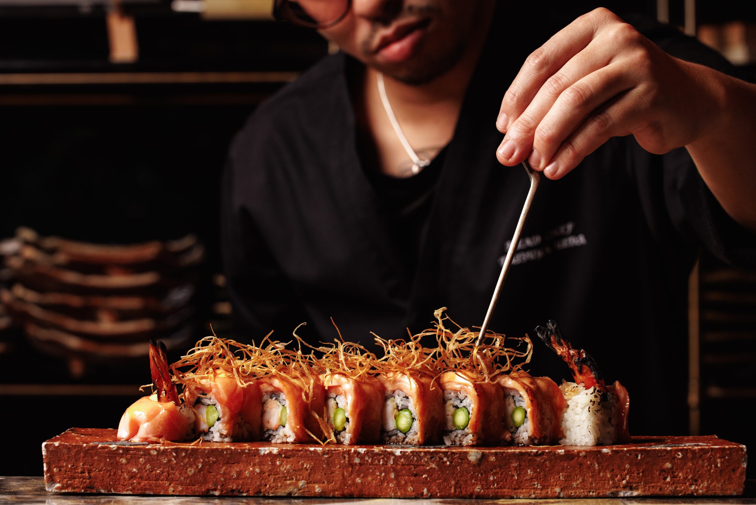 After perusing the menu, we started off with a selection of appetisers, starting off with the Tomato salad topped with stracciatella, figs, pine nuts, and basil was a delightful burst of freshness, with the sweetness of figs balancing perfectly against the creamy Stracciatella cheese. Stealing the show was the Salmon teriyaki roll, a menu favourite. Filled with succulent asparagus and shrimp, and topped with salmon, crispy onions and teriyaki sauce, blending the umami richness of teriyaki with the delicate seafood.