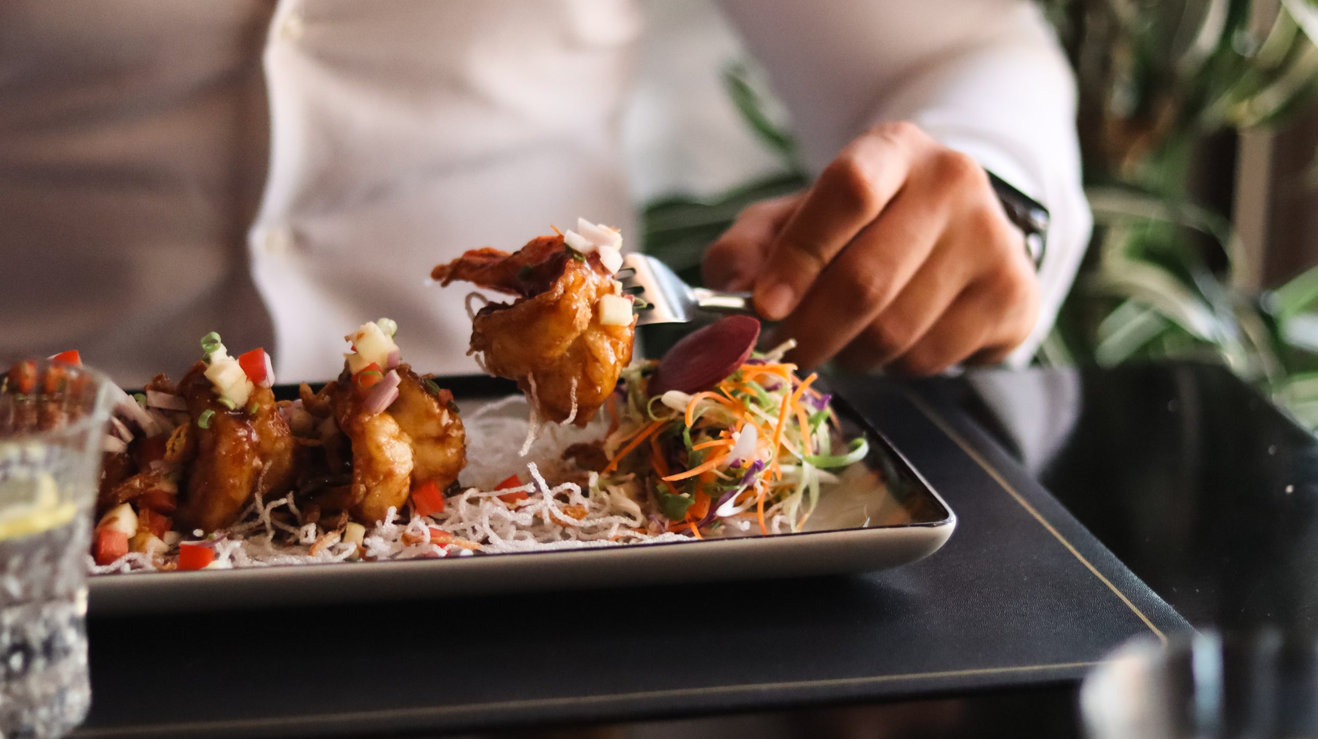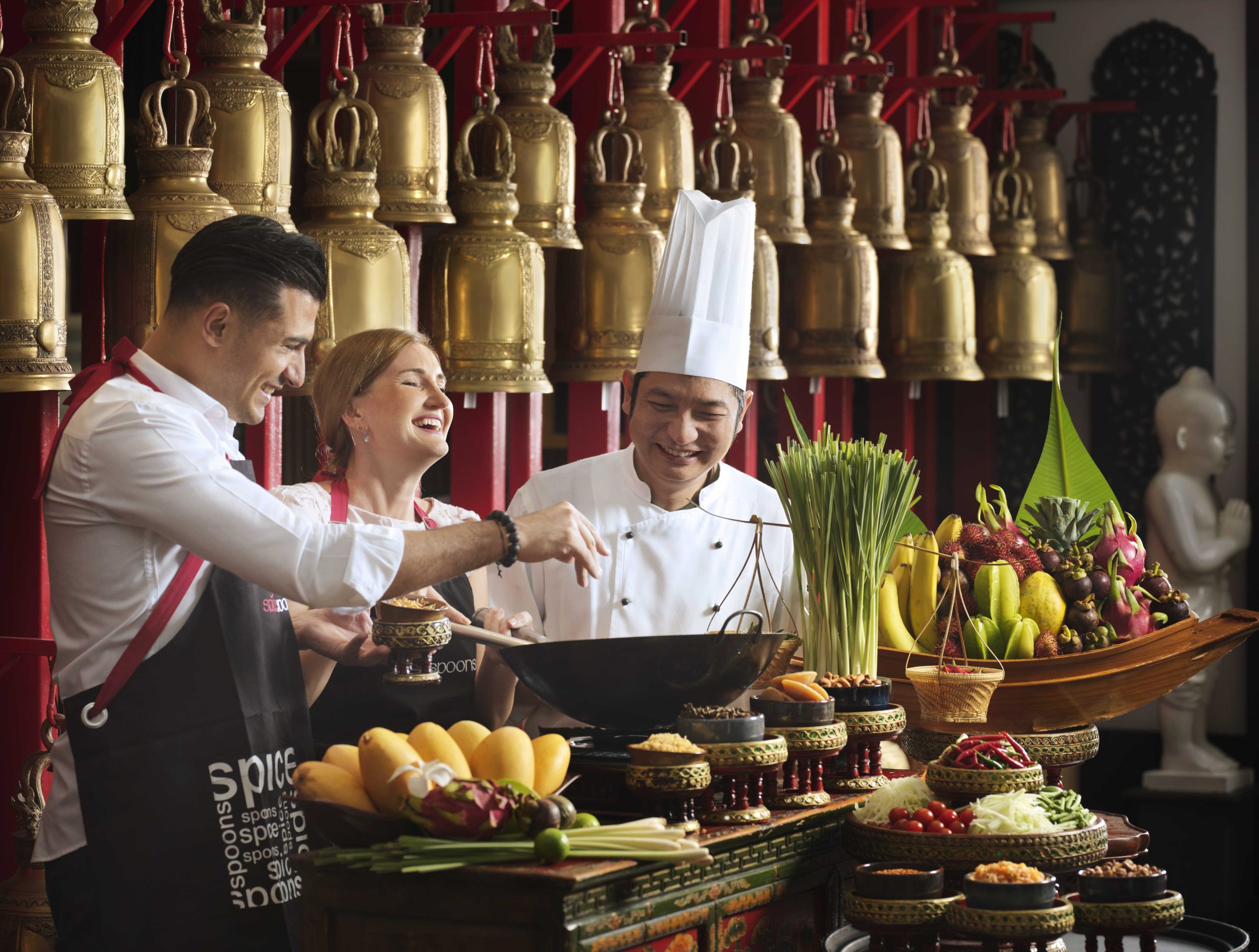 Next up on the roster was the Spice Spoons cooking class at Mekong, where the challenge was to prepare a selection of traditional Thai dishes under the guidance of the chef. First on the list was Cho Muang Sai Gai, an ancient royal Thai snack distinguished by its intricate flower shape. The dough, made from rice, tapioca, and corn flour mixed with coconut milk and butterfly pea water, came together smoothly. The savoury filling of minced chicken, coriander, garlic, and palm sugar added a rich burst of flavour, and the dumplings were carefully shaped before a quick simmer brought them to perfection.