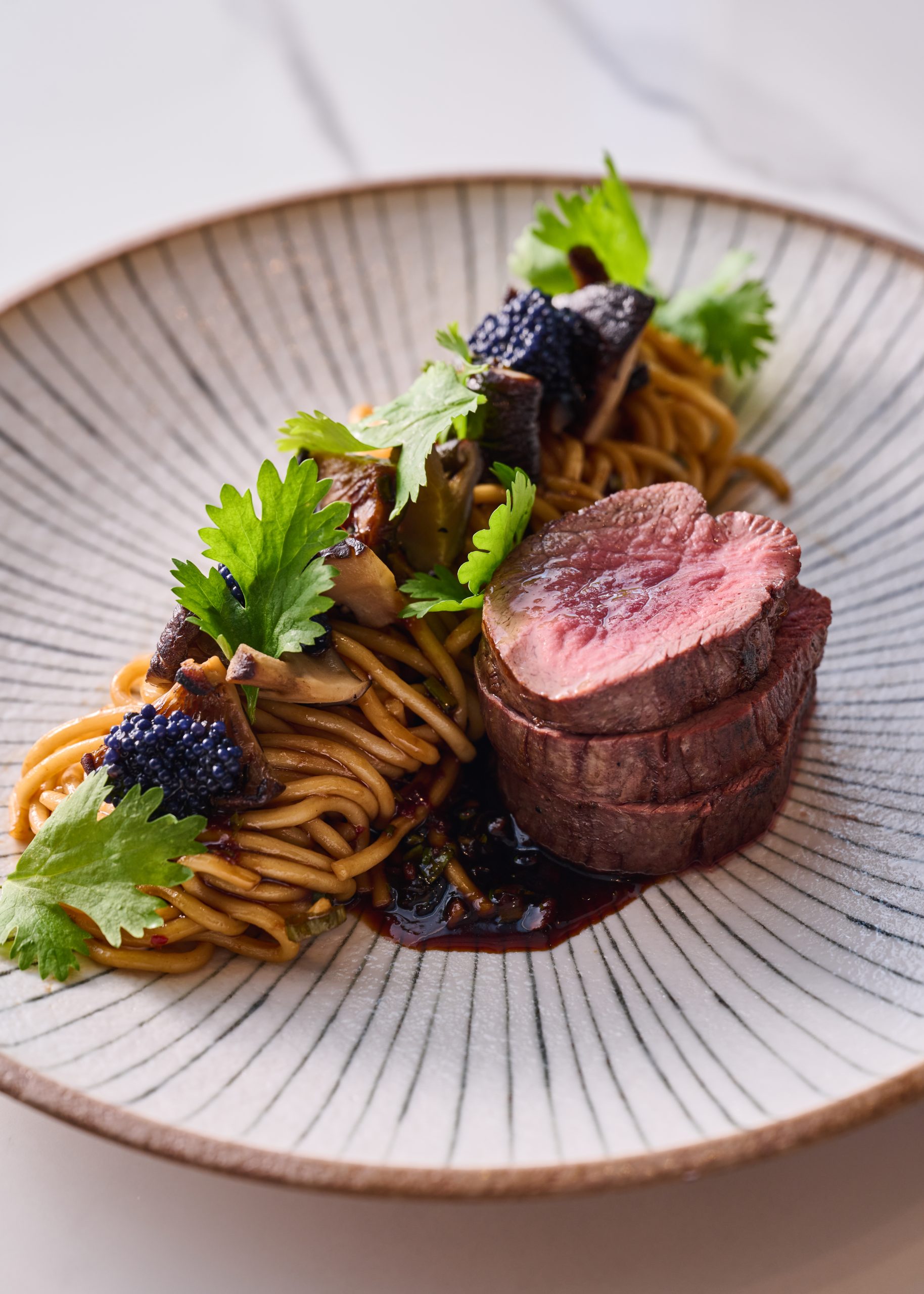 For mains, we delighted in a unique, sweet rendition of Ramen – spaghetti expertly tossed in a soy chilli vinaigrette and served with tender Angus Beef Tenderloin slices, savoury mushrooms, and caviar. Our favourite dish, the Roasted corn-fed chicken supreme was perfectly tender and topped with creamy polenta, mushrooms, cipollini onions, and a tantalizing tarragon chicken jus.