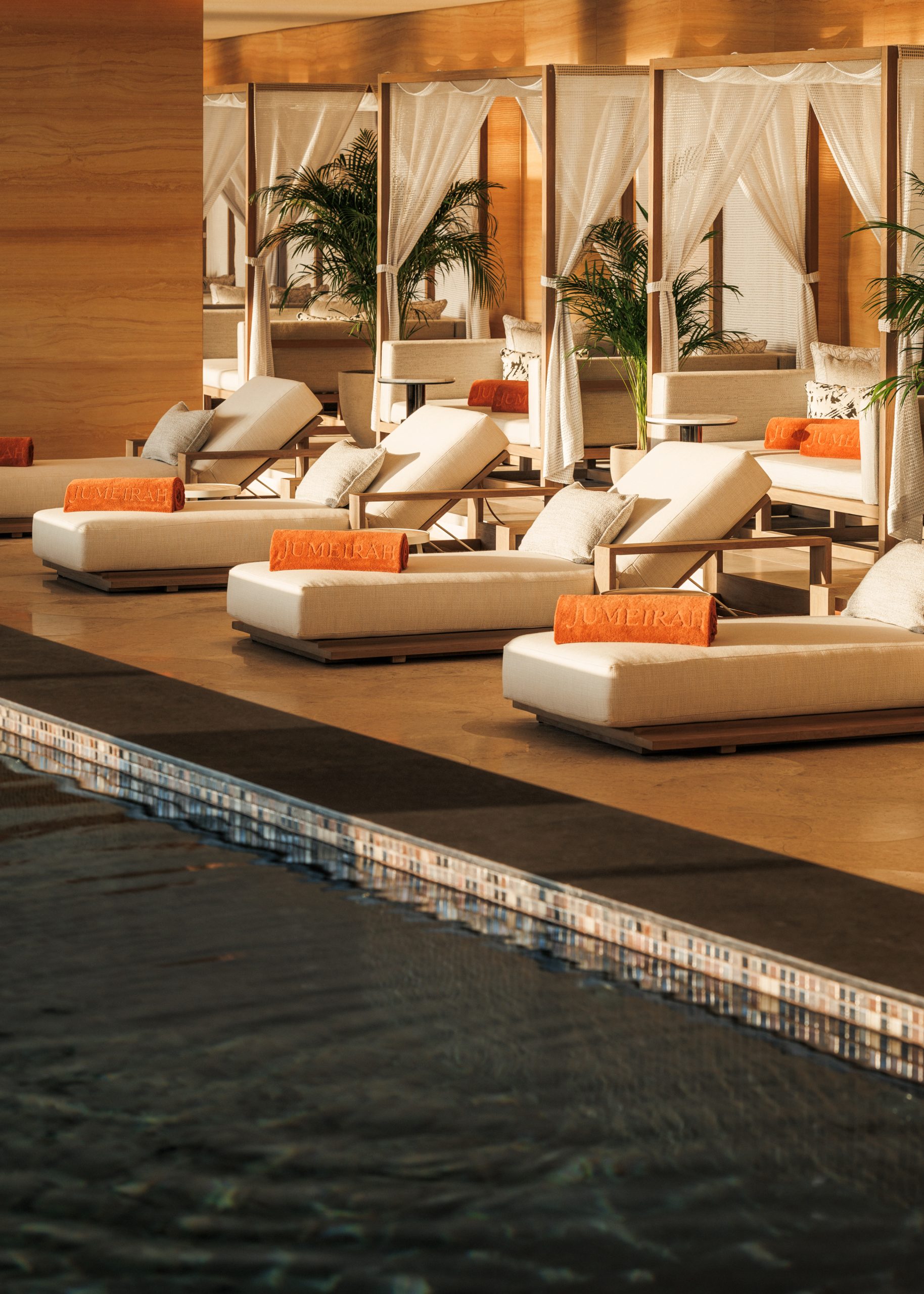 Jumeirah Marsa Al Arab presents an array of wellness and leisure experiences set amid verdant palm trees and tranquil water vistas. The resort features five stunning pools, including expansive outdoor pools surrounded by greenery and an exclusive suite pool, offering guests a variety of settings to relax and unwind.