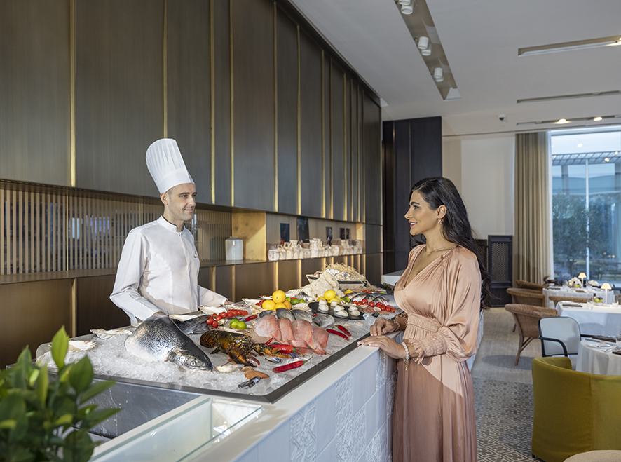 The all-day dining restaurant Vinesse captivates with its elegant glass structure design, seemingly floating on the surrounding waters and seamlessly blending into the resort’s ambience. During our stay, we savoured a memorable dinner here, exploring the special Thali concept by Chef Pranav Upadhyay, featuring an array of delectable curries served on a platter, accompanied by fragrant saffron and spice-infused rice. Each dish, bursting with flavour and featuring a variety of proteins, offered a delectable journey through Indian cuisine. Ending our meal with a traditional dessert, we indulged in a serving of carrot halwa topped with a scoop of vanilla ice cream.