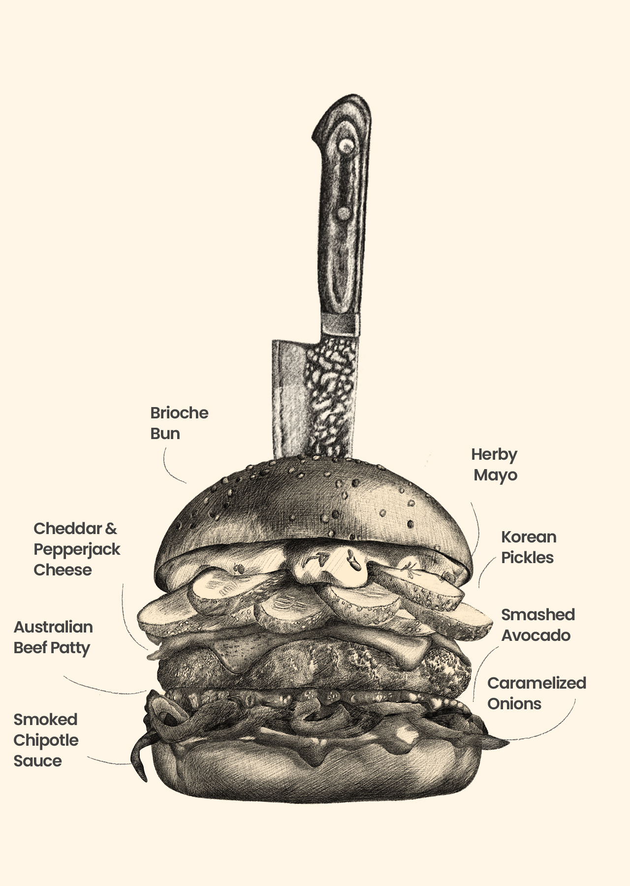 The Garibas burger is made with a blend of three prime cuts—brisket, ribeye, and chuck roll—enhanced with rich Wagyu fat for depth of flavour. It is topped with a herby mayonnaise infused with beef tallow, rosemary, and French thyme, alongside a smoky chipotle sauce. Korean-style pickles, marinated in sesame oil, rice vinegar, and chilli flakes, add a tangy kick, while creamy avocado spread and caramelised onions complete the ensemble.